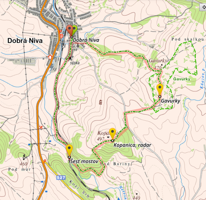 Trasa : Dobrá Niva - Gavurky - Kopanica - Šesť mostov - Dobrá Niva.