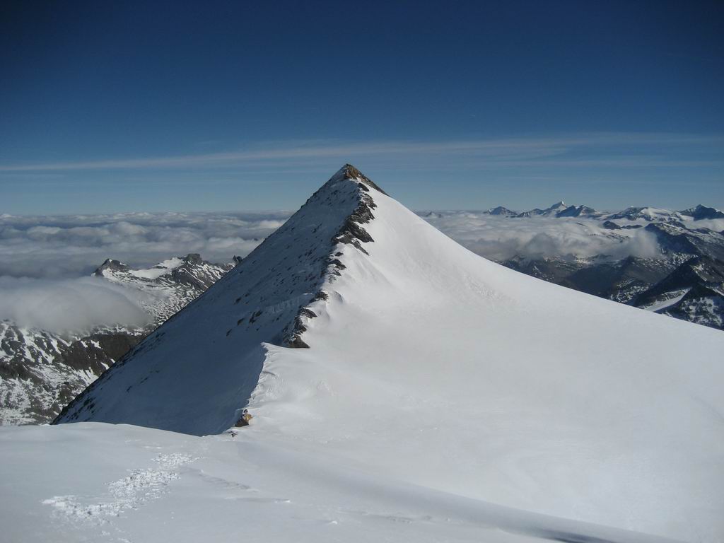 Sobotňajšie ráno bol však úplný opak – jasno, bez mráčika, slniečko už začalo ožarovať okolité štíty. Ideálne počasie na vysokohorskú túru. Naším cieľom bol prechod hrebeňa od Rainerhornu po Kristallwand. Popri skalnom hrebienku Mullwitzderl sa tiahlym stúpaním dostávame na náš prvý vrchol Hoher Zaun (3451 m). Potom sa vydávame západným smerom ku Rainerhornu (3559 m), ktorý zdolávame strmým zasneženým svahom. Následne skalným hrebienkom prichádzame na tretí vrchol v poradí - Schwarze Wand (3508 m). Slnkom zaliatou snehovou pláňou sa dostávame ku Kristallwandu (3310 m). Na vrchole nás čaká bezvetrie a veľký kríž. Spiatočnú cestu k chate si spestrujeme výstupom na nevýrazný Stein am Ferner (3246 m) a traverzom ľadového údolia plného zasnežených trhlín. Štvorica z nás sa rozhodla ešte v ten deň odísť domov, takže po 6 hodinovej túre ešte museli klesnúť 1700 výškových metrov k autu. Druhá polovica si “vychutnala“ druhú noc v preplnenom winterraume. V malej izbe s oficiálnou kapacitou 12 ľudí sme spali dvadsiati. V nedeľu sme v kľude zišli dole do Hinterbichlu vychutnávajúc si plnými dúškami krásu okolitých hôr.